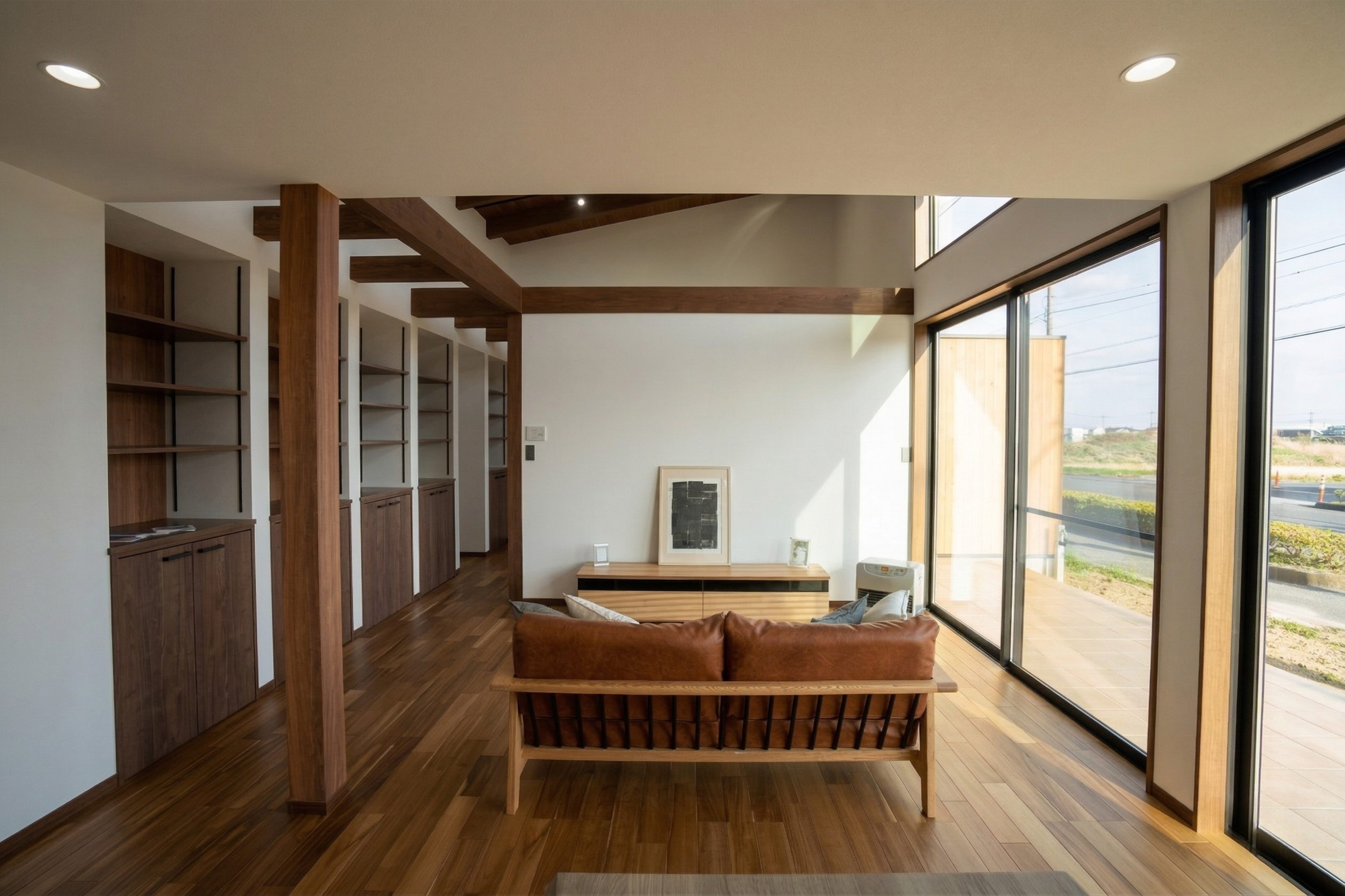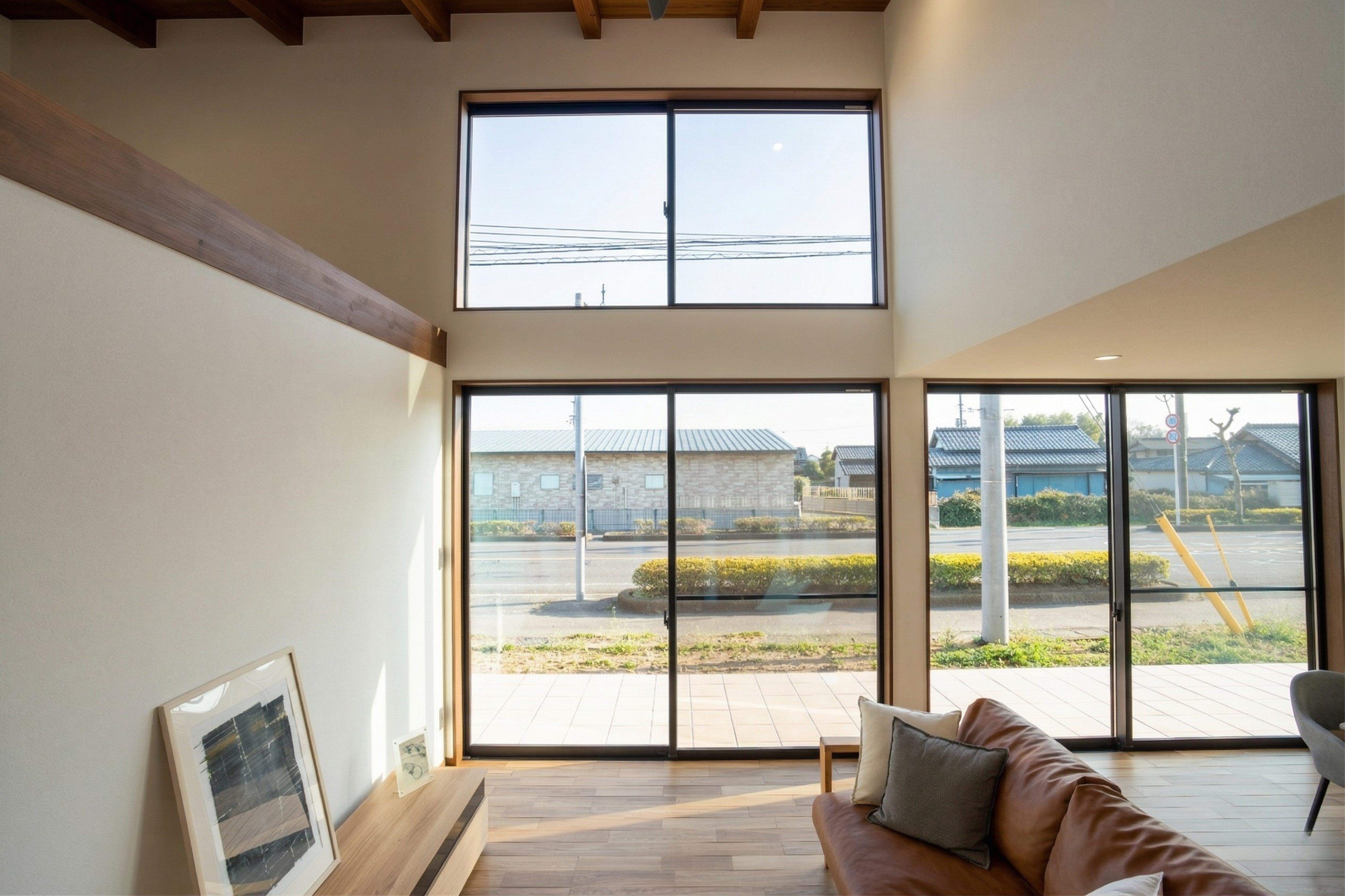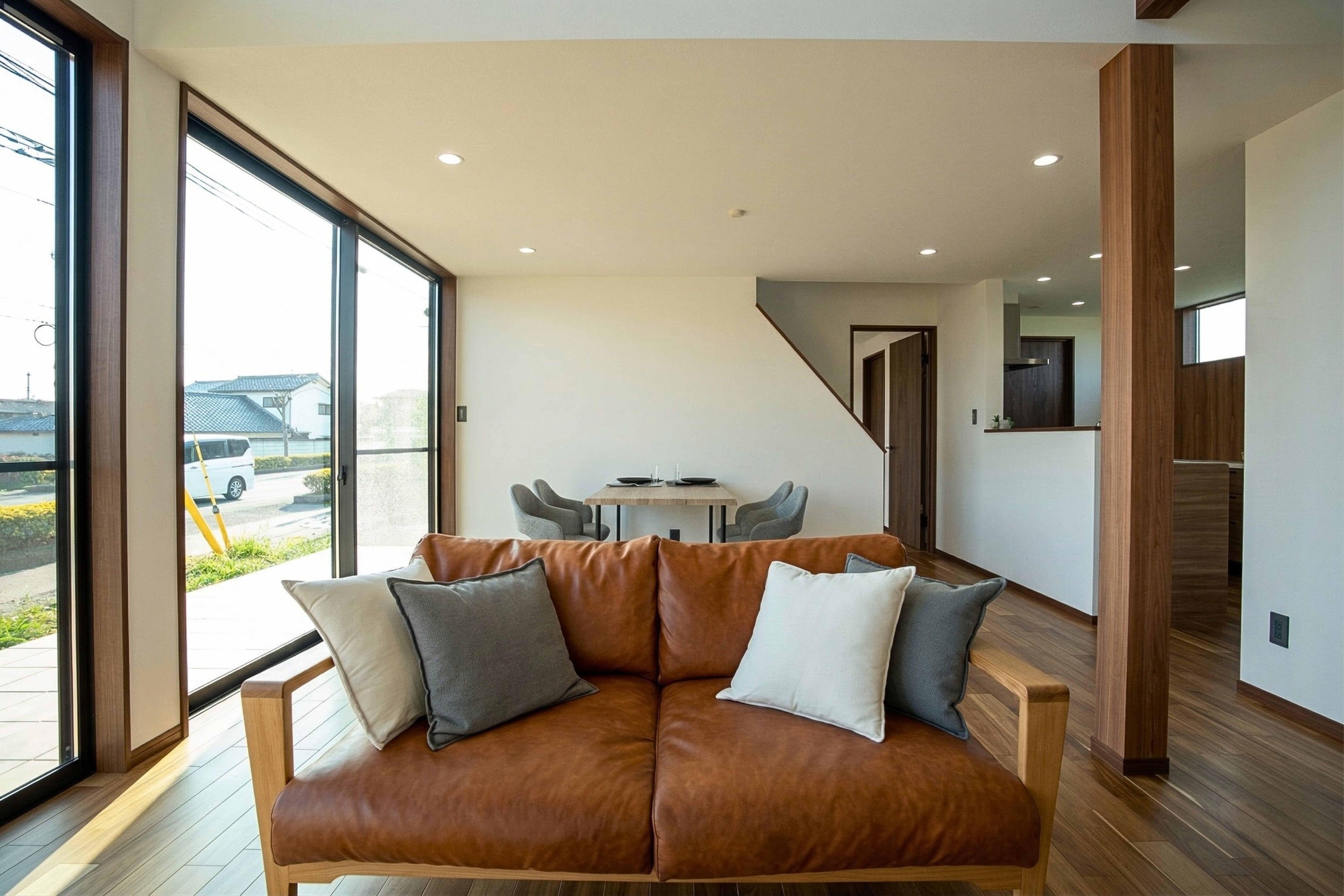 大きな窓から光をたっぷり取り込む、開放感あふれるモダンデザインの住まい。