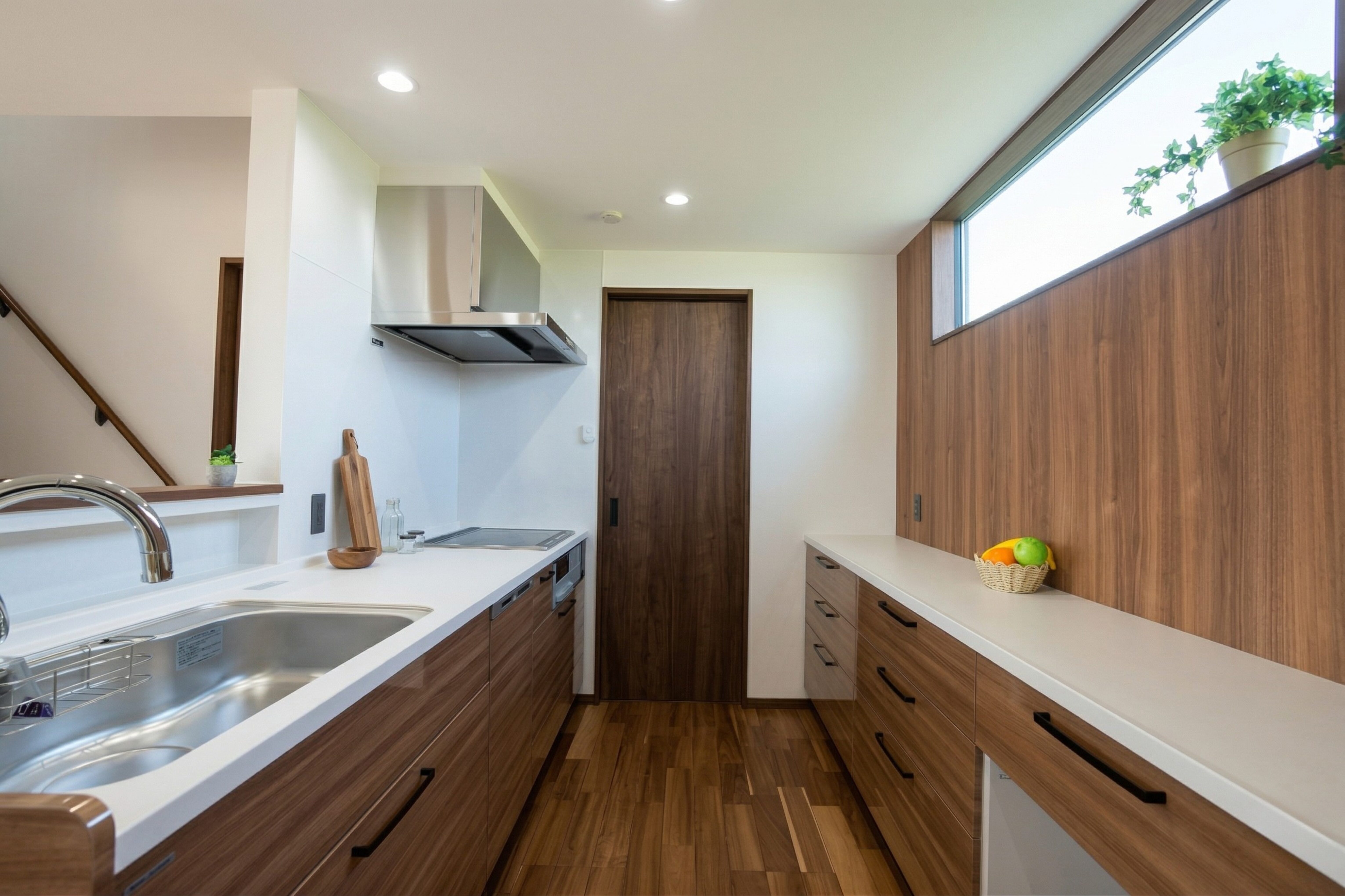 キッチンから洗面・脱衣室・浴室へとスムーズにつながる配置。
