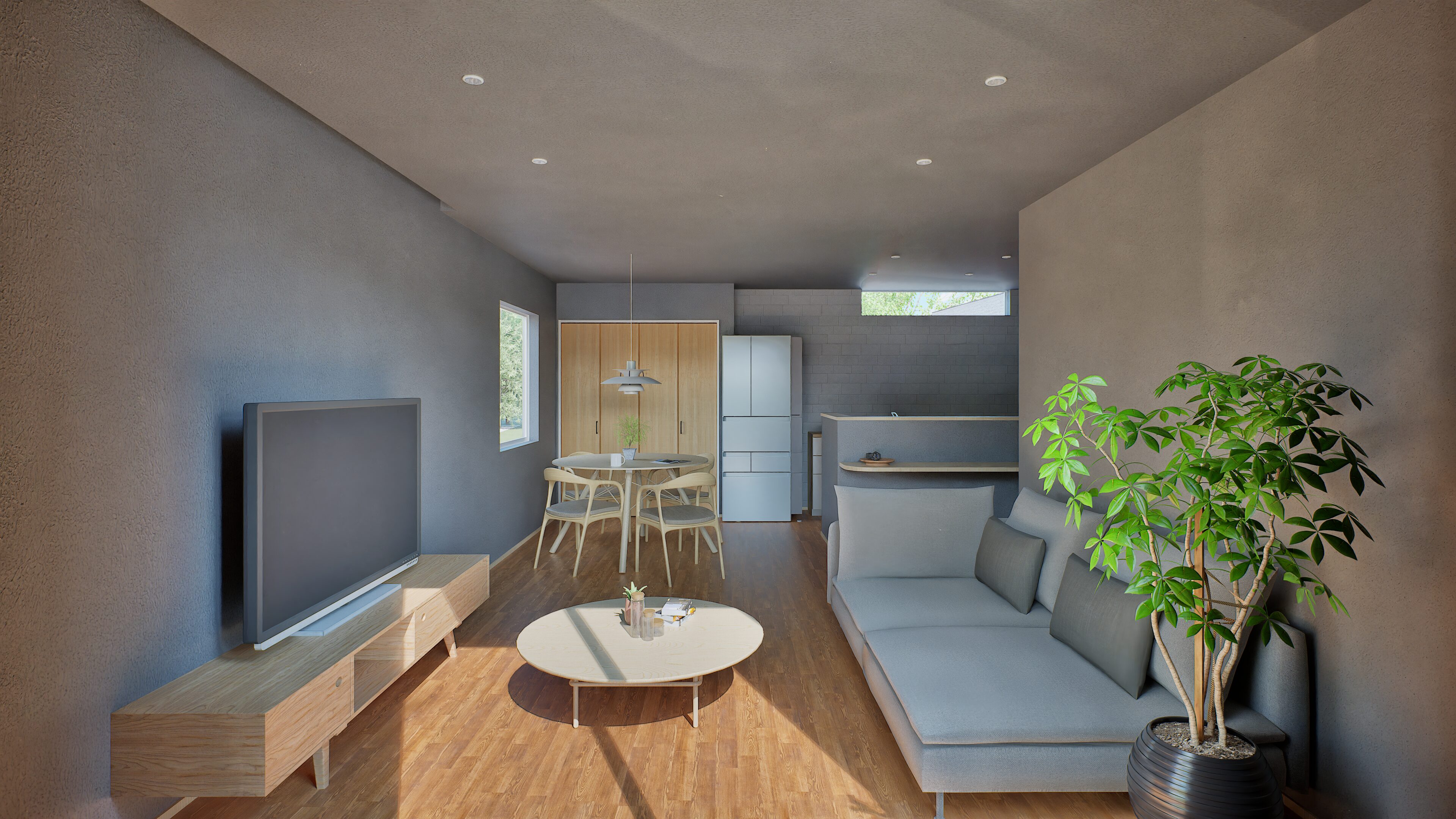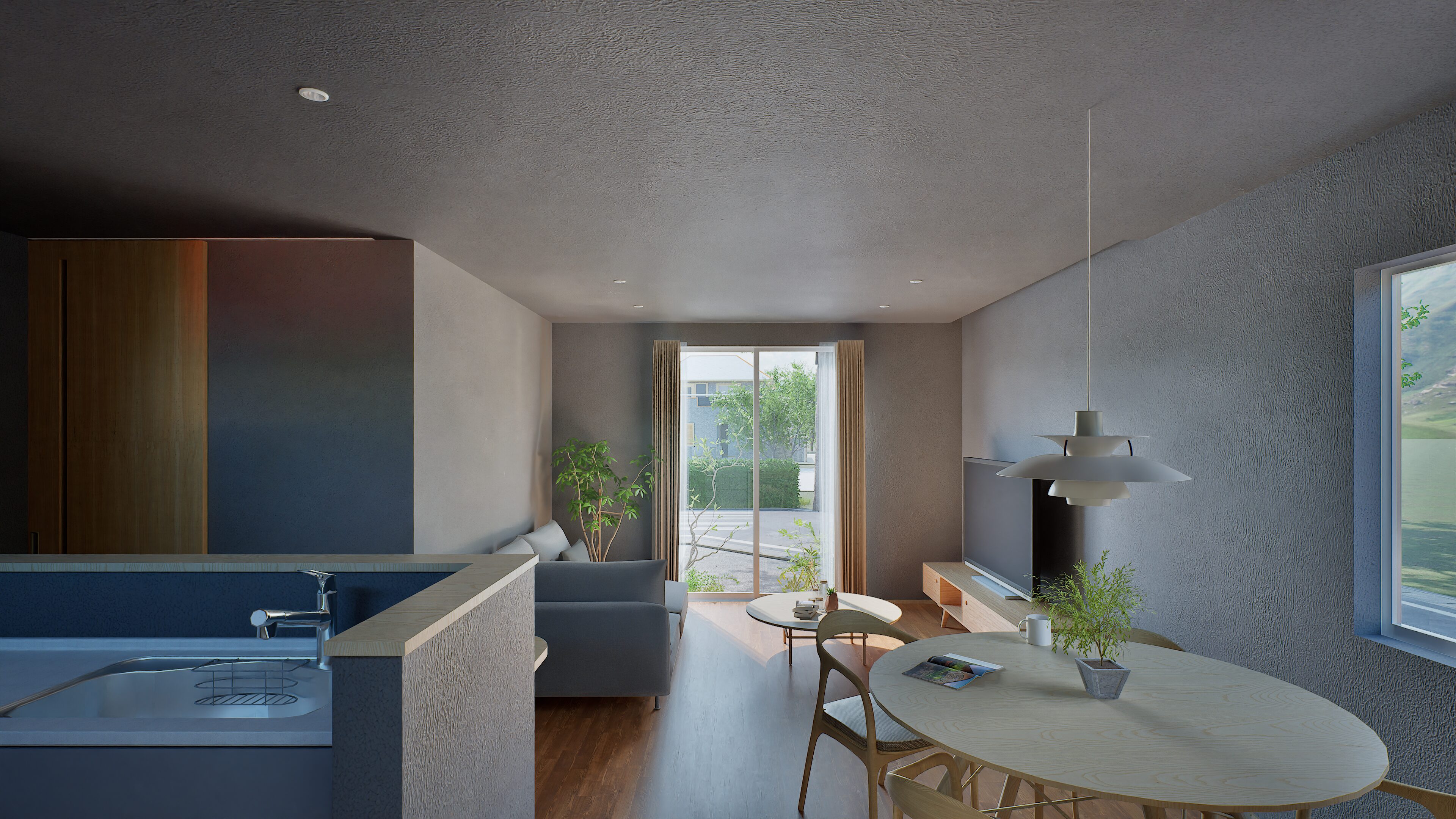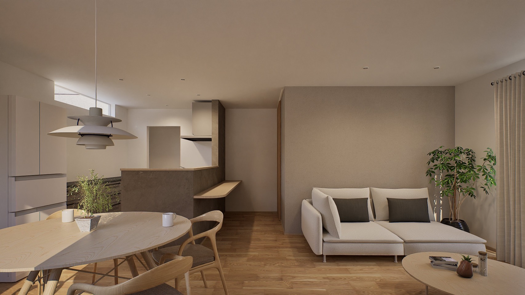 光と広がりを感じるLDK空間